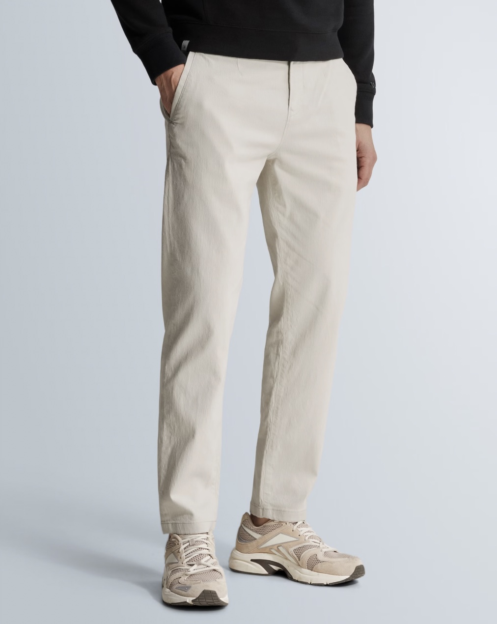 Deze comfortabele chino is gemaakt van een katoen/linnenmix met een subtiele structuur.