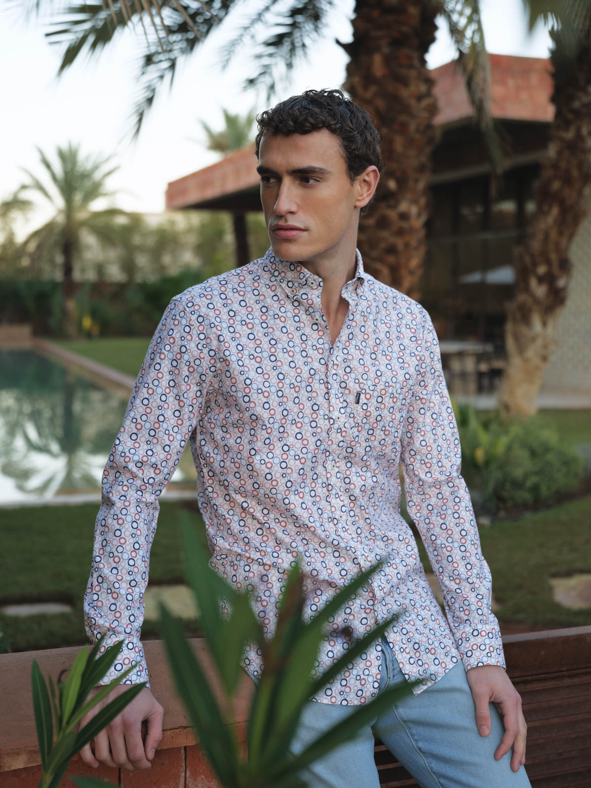 Giordano • Shirt Shortsleeve • Linen Look Organic Print • Dark Red (6019/30)