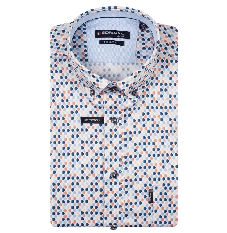 Giordano • Shirt SS • Satin Stretch Geometrical Print • Dark Red