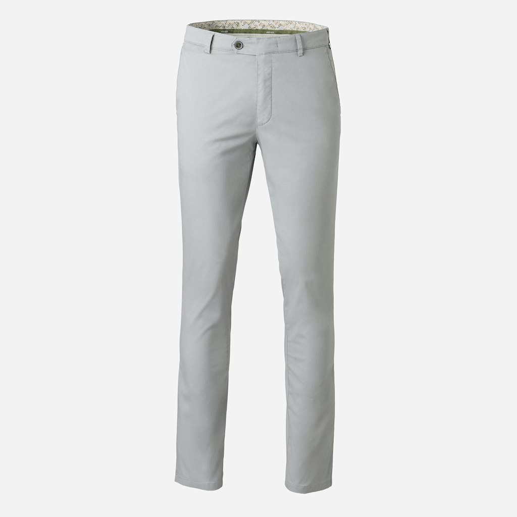 Zomerchino in keperstof met superstretch voor een maximaal vrije beweging. Aparte details, moderne pasform, verreweg de moeite waard.