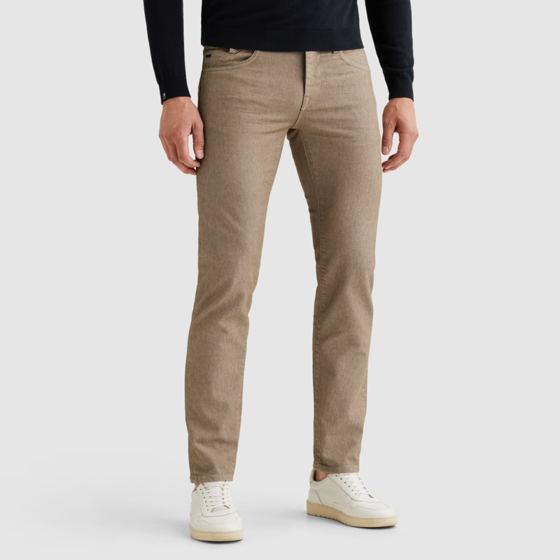 Hij is uitgevoerd in een stijilvolle, beige kleur en voorzien van details in een speciale kleur, wat deze jeans uniek maakt.